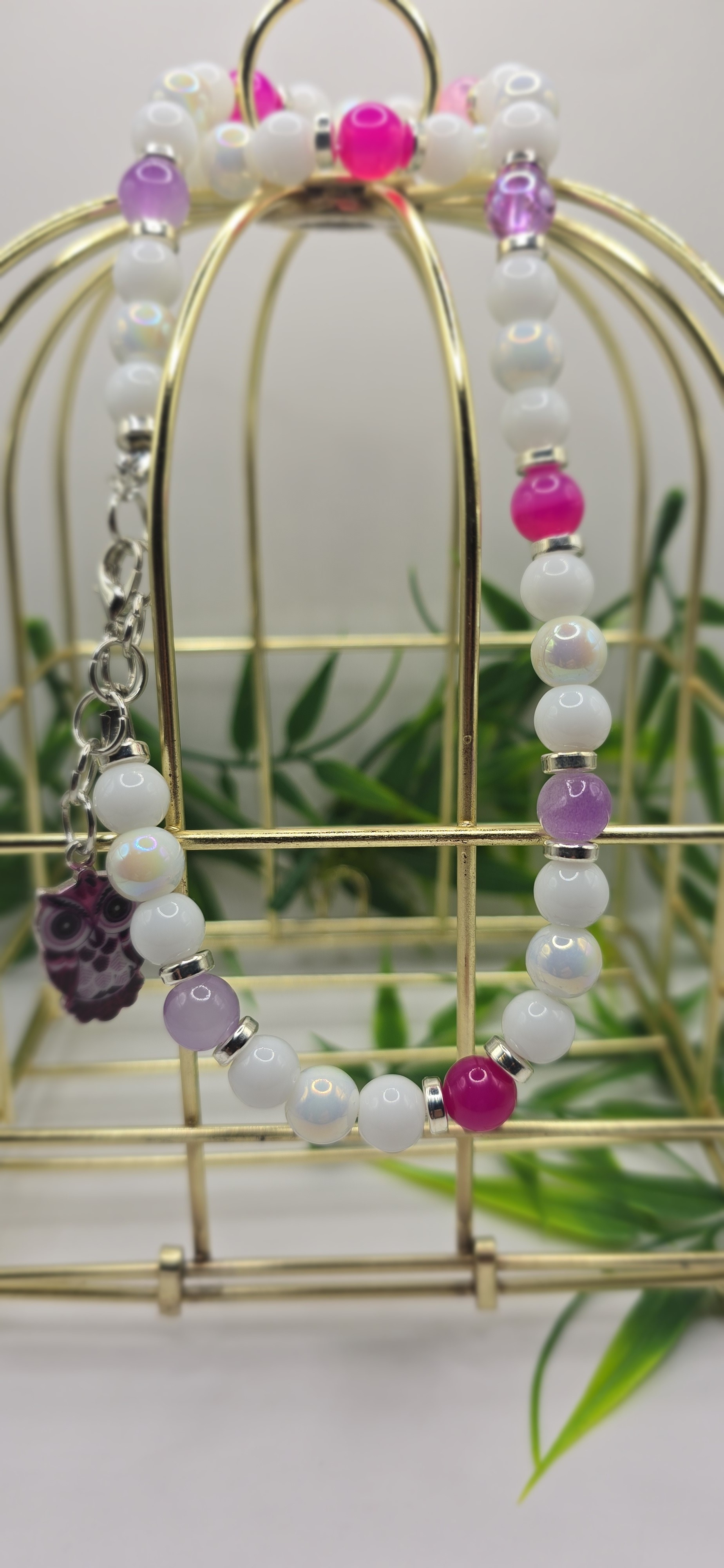 avec le hibou et son fermoir argenté à l’avant, comme un pendentif original,ou en version perles tout autour du cou, pour un style plus épuré et élégant.