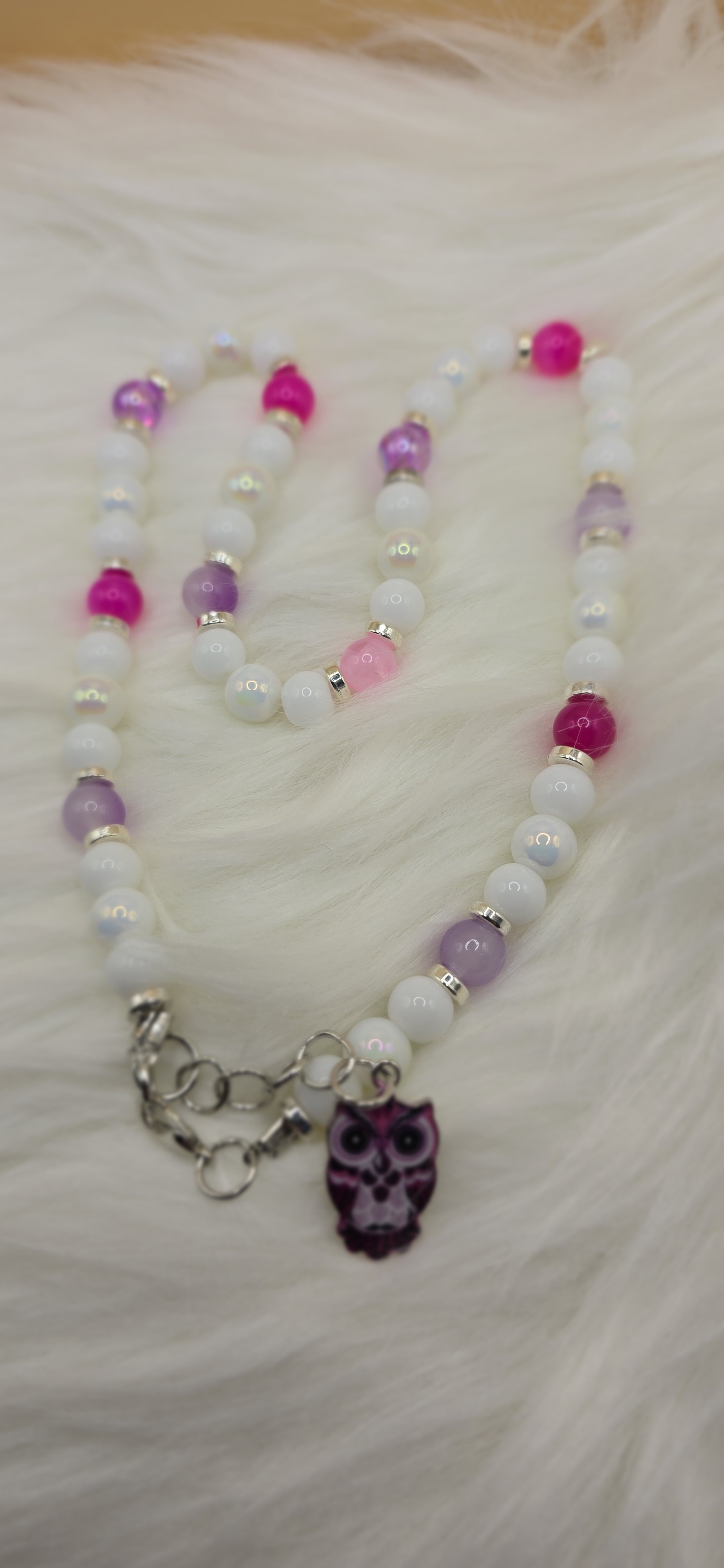 Un collier tout en délicatesse, mêlant le blanc à de légers reflets de rose et de violet 🌸