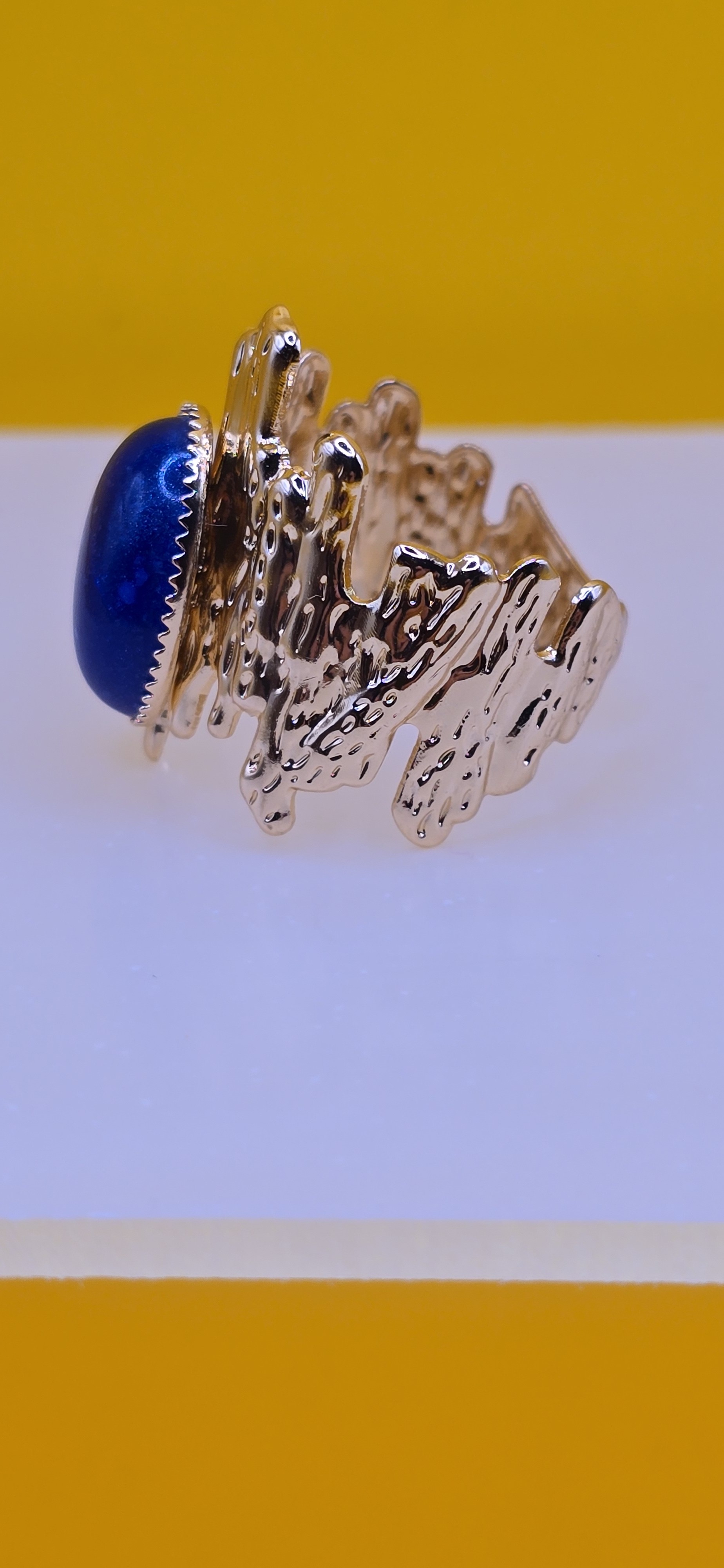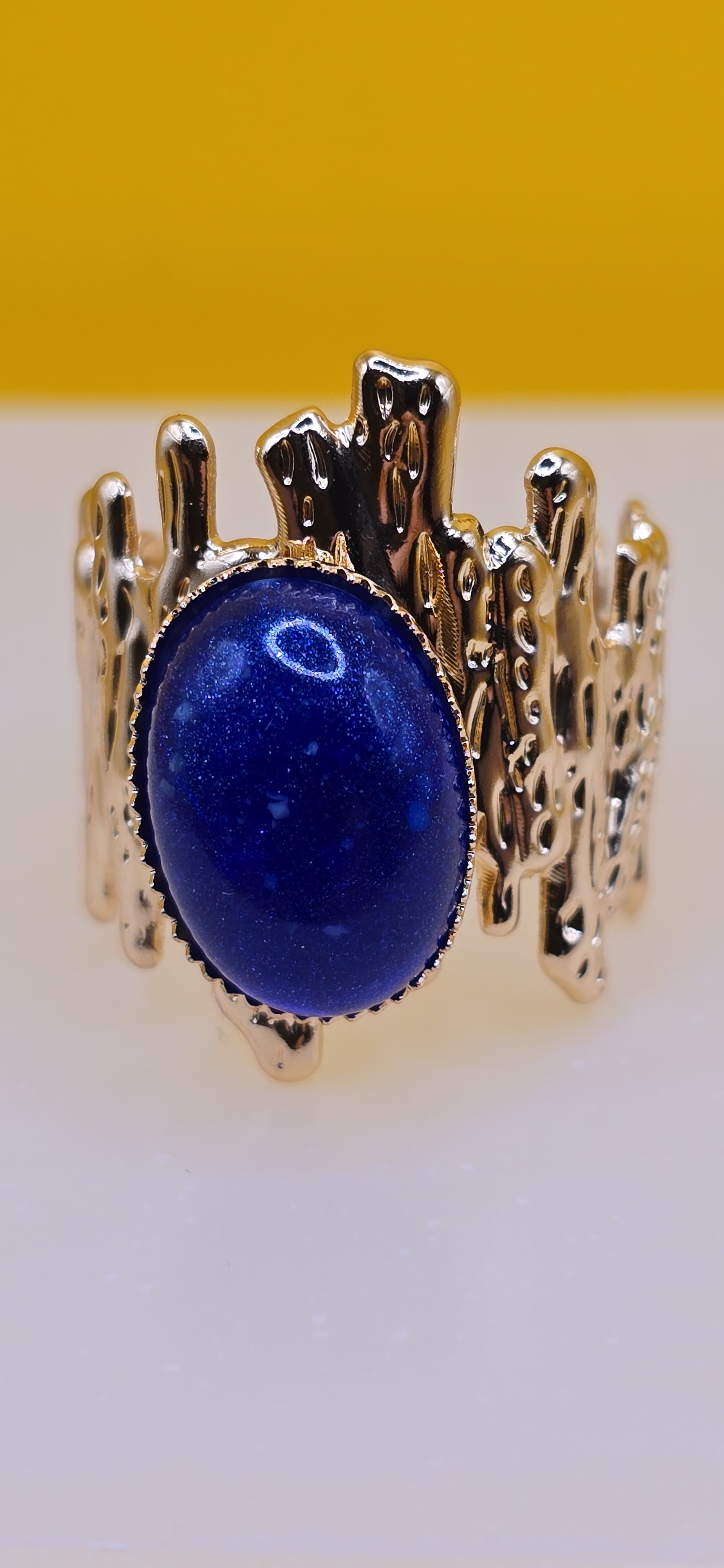 âđ Plaqué Or & Pierre Bleu Nuit. L'élégance mystérieuse en un anneau.