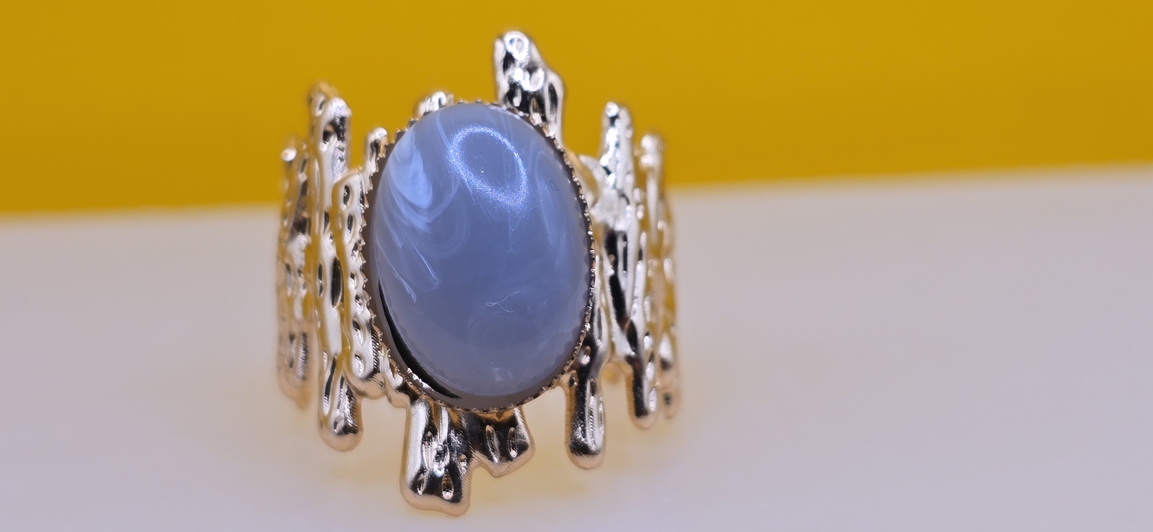 âđ Plaqué Or & Pierre Gris Intense. L'élégance sobre et moderne en un anneau.