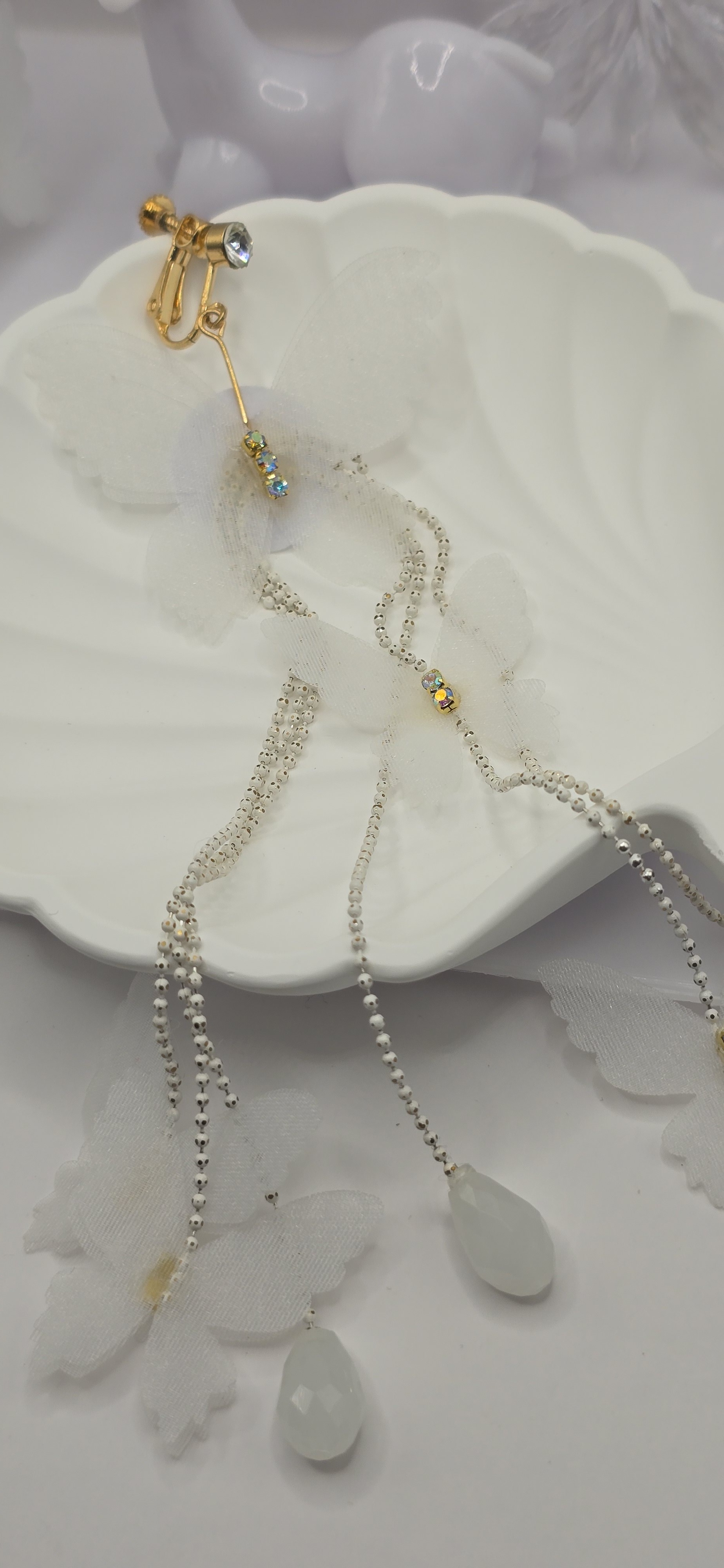 Leur conception en alliage (couleur Or) est rehaussée par un papillon délicat et de longs pompons en tissu Blanc qui confèrent un mouvement aérien et élégant. Grâce au système à clip, léger et facile à porter (intégrant du plastique), elles sont idéales pour celles qui n'ont pas les oreilles percées. Parfaites pour les événements spéciaux !