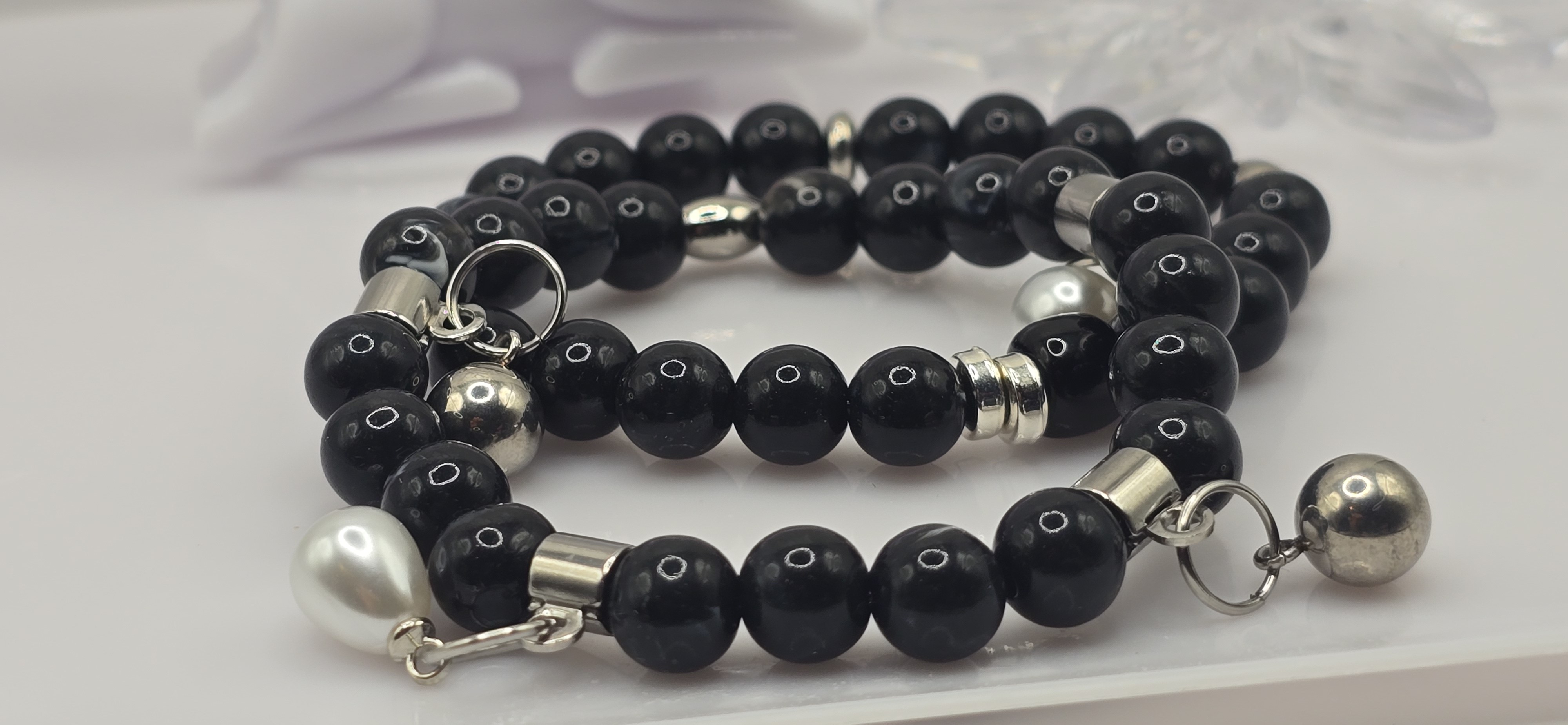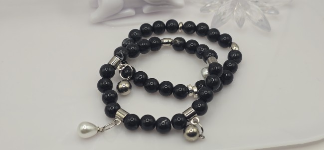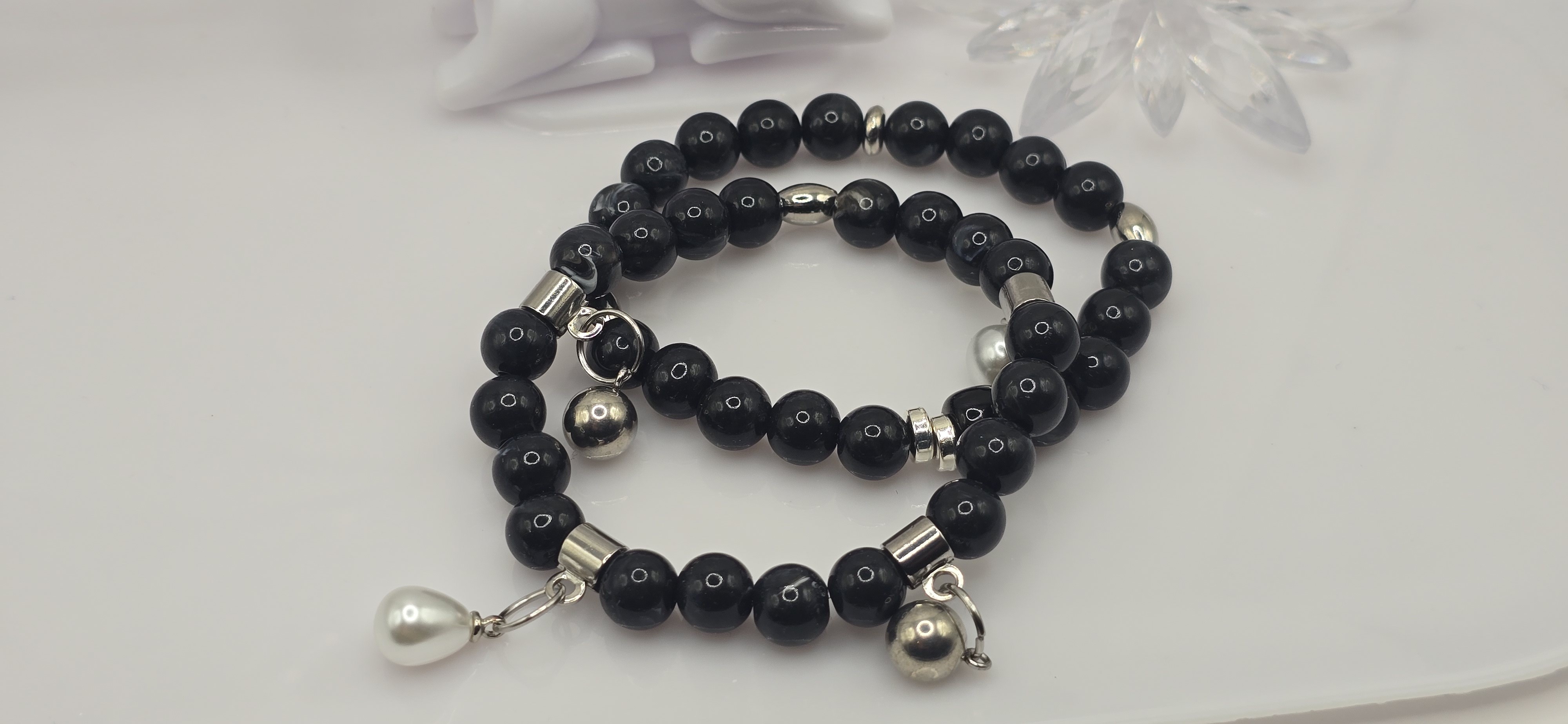 Ce duo de bracelets élastiques incarne l'audace et le mystère des légendes maritimes. Chaque bracelet est composé de perles noires polies (pierres de style Onyx ou similaires) d'un noir profond et intense, qui symbolisent la force et la protection.