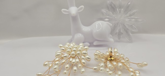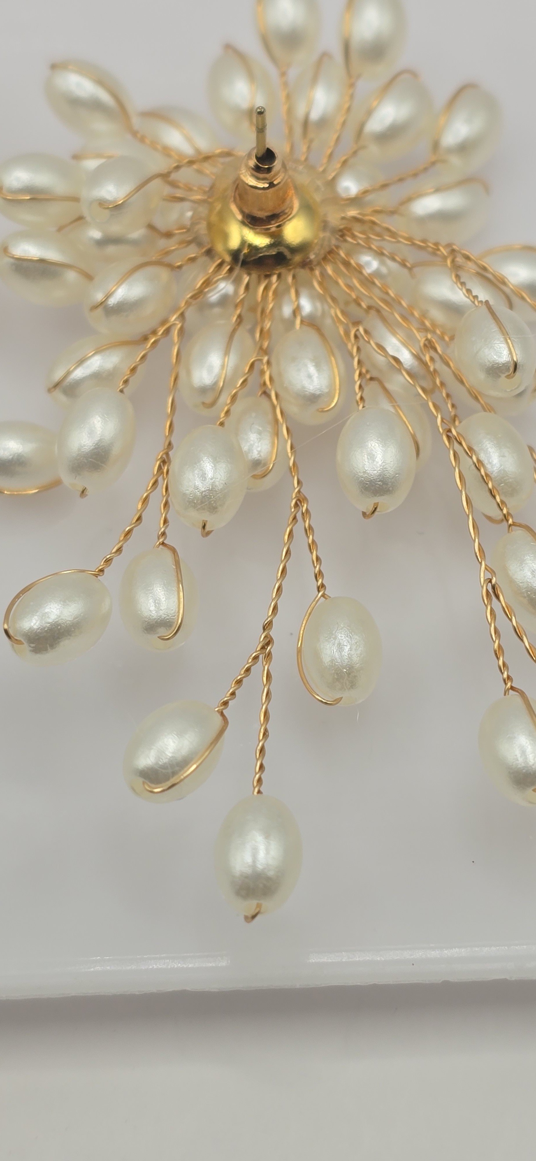 âCes boucles d'oreilles sont idéales pour les soirées et les grands événements. Elles créent un effet "cascade florale" grâce à de multiples petites perles en forme de goutte (imitation perle de culture) montées sur un fin fil de métal doré. Elles sont à la fois élégantes et très lumineuses.
