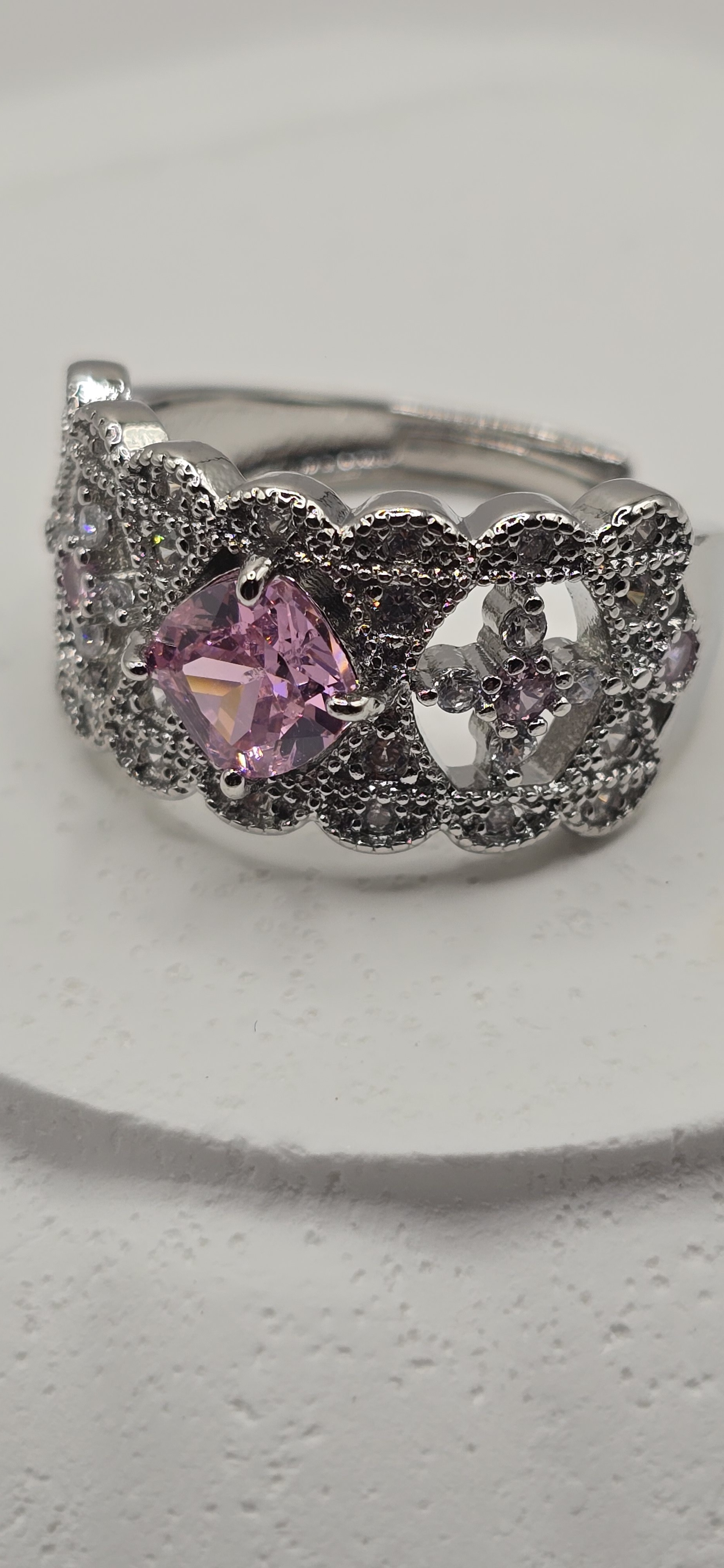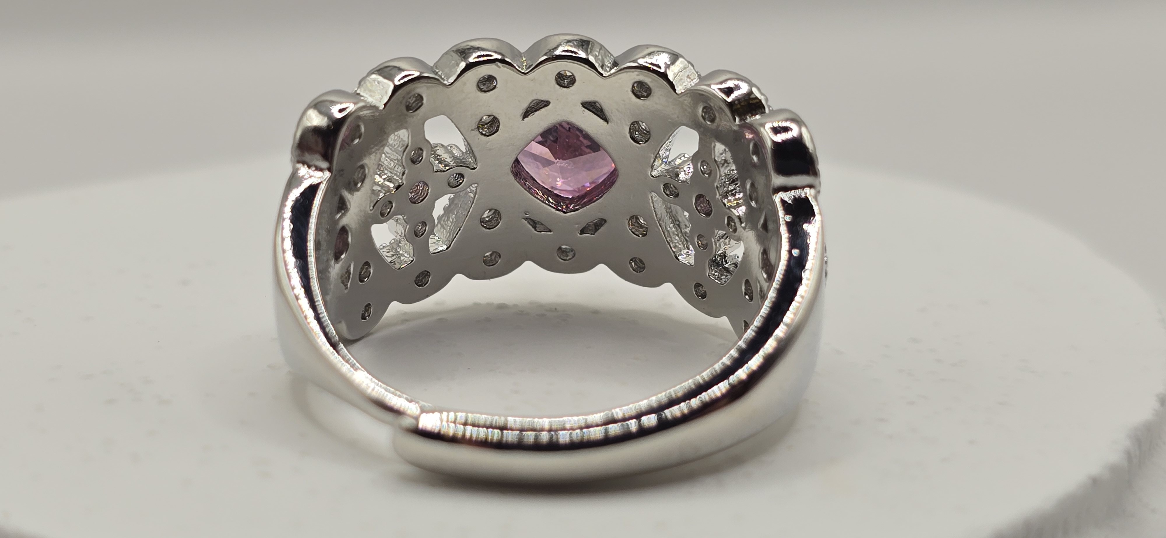 Inspirée par l'élégance des bals de la haute société londonienne et le raffinement de la Régence, cette bague est une véritable pièce de cour. Son travail de dentelle ciselée met en majesté une pierre centrale rose, évoquant le romantisme des plus grandes sagas historiques.
