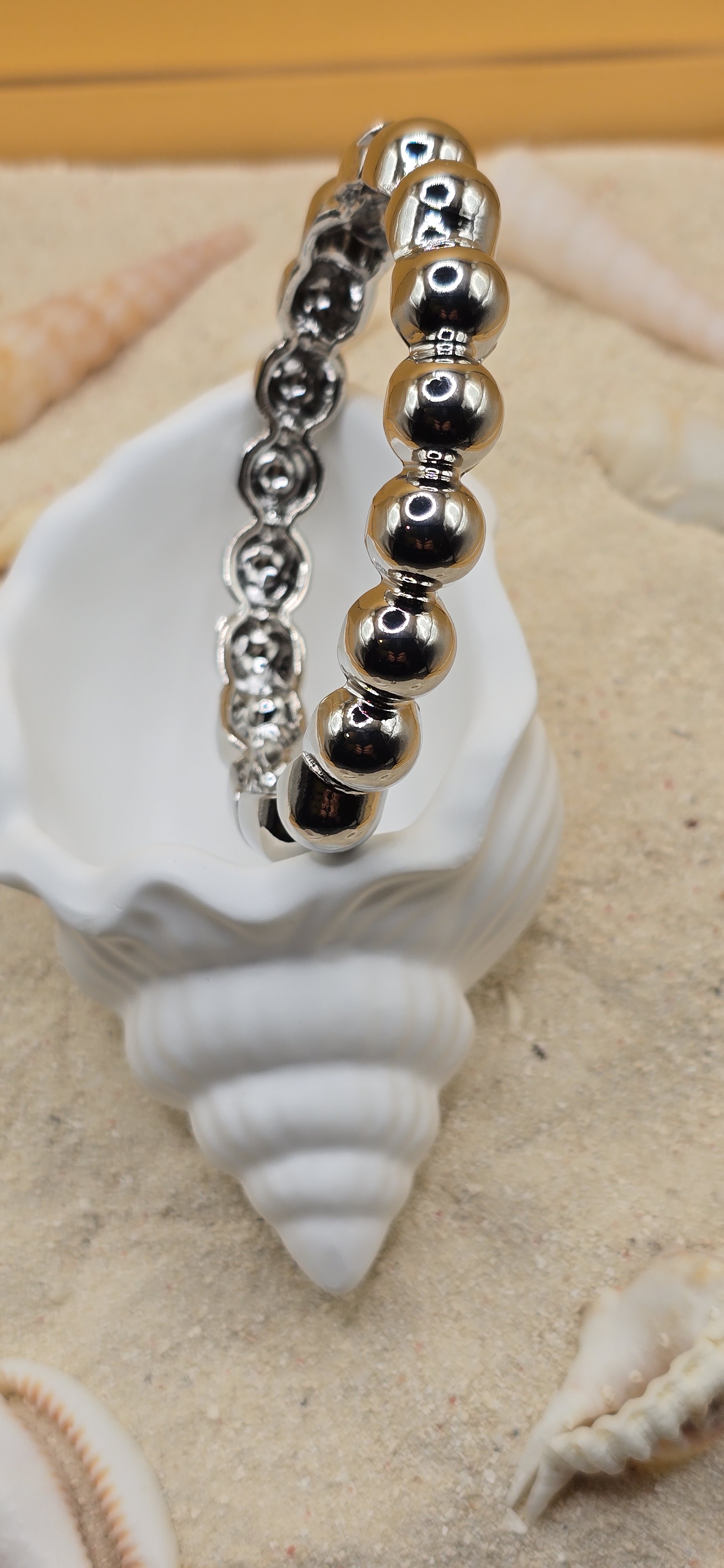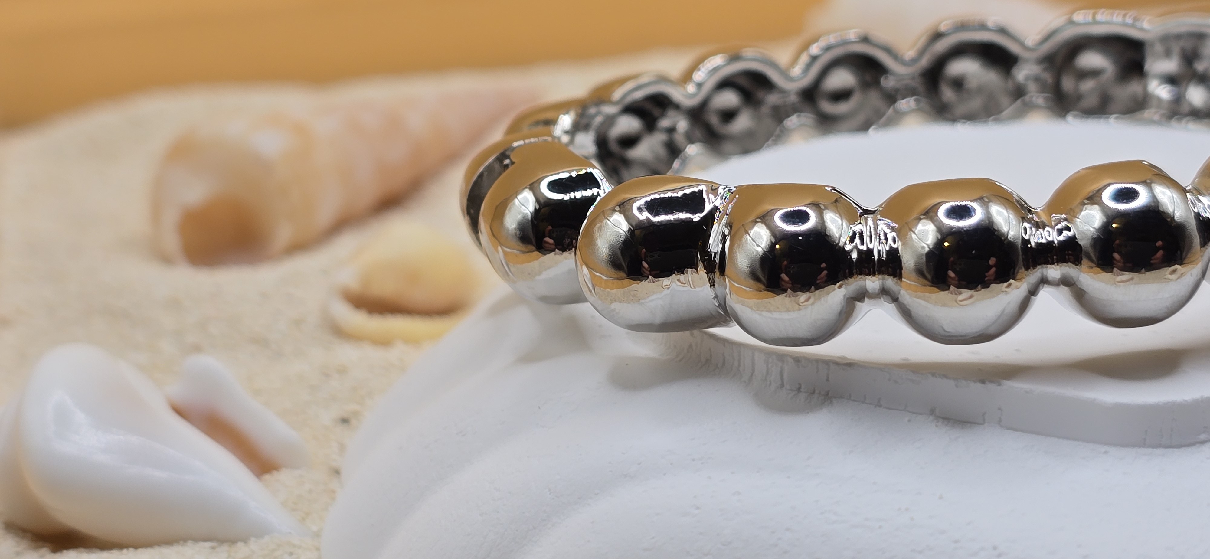 L’éclat du métal pur dans un design perlé sophistiqué. Fabriqué en acier inoxydable, ce jonc aux billes argentées offre un fini brillant ultra-moderne qui dure dans le temps. L'accessoire indispensable pour un look chic, épuré et contemporain. 💿