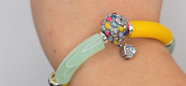 Un voyage imaginaire à votre poignet ! Ce bracelet unique capture l'éclat d'un bouquet de ballons emportant une petite maison vers les nuages. Un bijou poétique, vibrant et plein de joie.