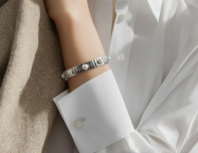 Bracelet Jonc Élastique LENA – Argent & Perles✨️