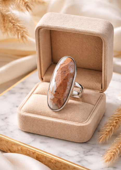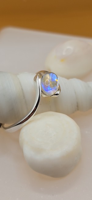 🌙 Bague Ajustable "Opaline" - Pierre de Lune 925