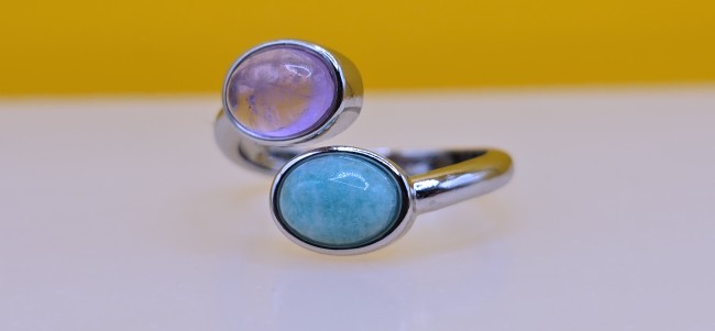 Bague "Toi & Moi" - Améthyste & Amazonite
